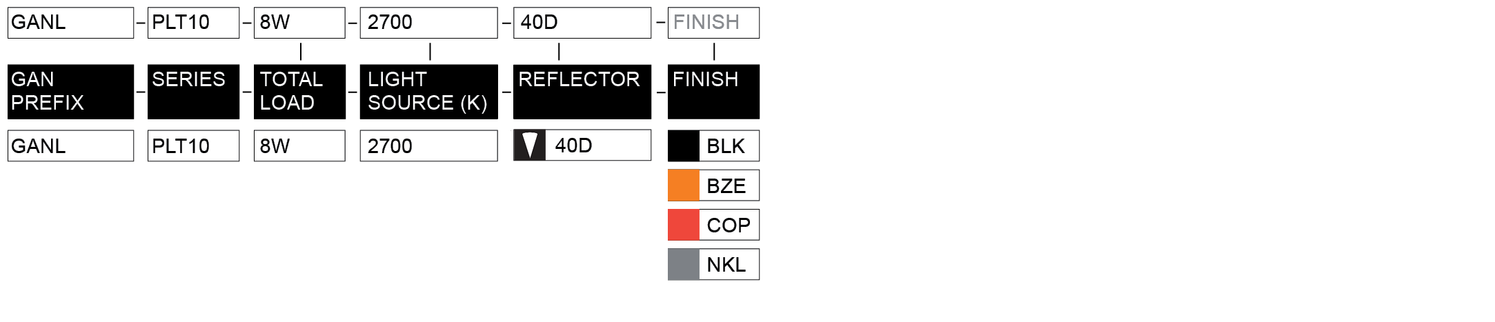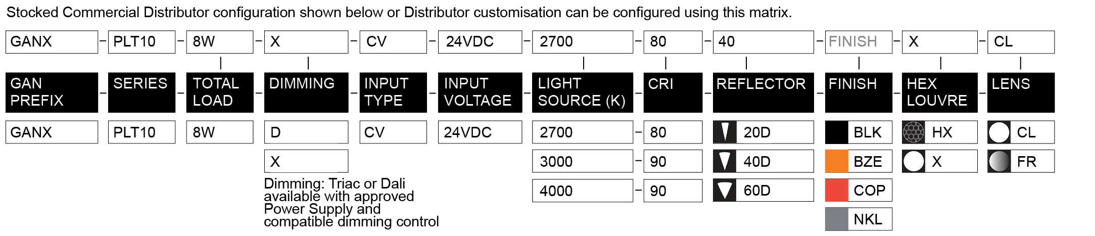 Designed to suit a variety of residential and landscaping applications the Standard range is readily available from your local Distributor. To identify your unique ordering code simply add your chosen finish to the end of the code matrix as shown below.
