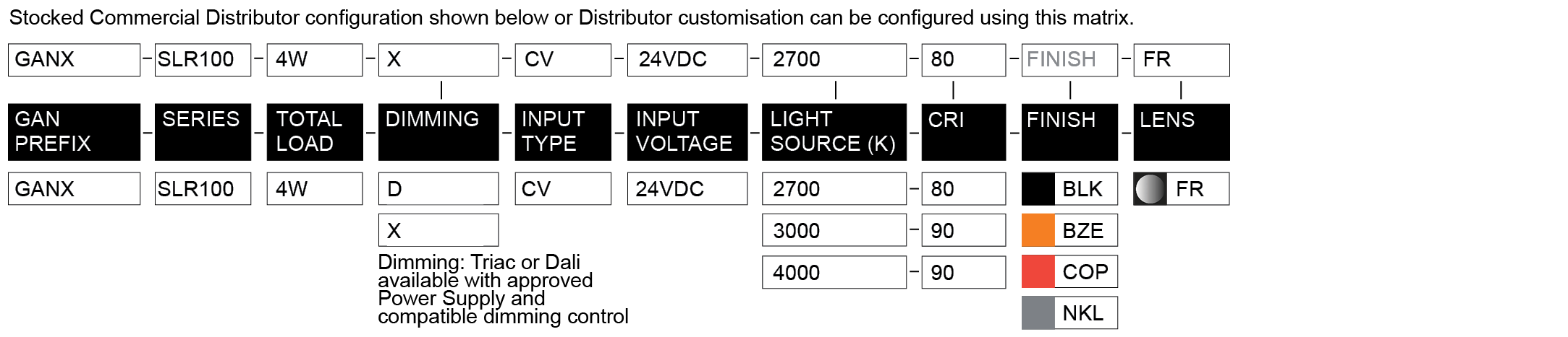 Designed to suit a variety of residential and landscaping applications the Standard range is readily available from your local Distributor. To identify your unique ordering code simply add your chosen finish to the end of the code matrix as shown below.